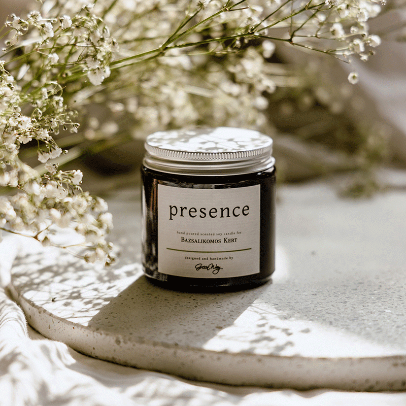 Imádom az illóolajakat és a gyertyákat! A GreenWay Design nekünk készítette a Presence nevet viselő természetes szójagyertyát, melynek közös megalkotásakor a szójaviaszba tömjén, fenyő, citromhéj, kubeba és zsálya illóolajok kerültek. A Presence a jelenlét gyertyája, azokra a pillanatokra született, amikor befelé szeretnénk figyelni, tanulunk, alkotunk, meghallgatunk másokat és gondolatban teremtünk.