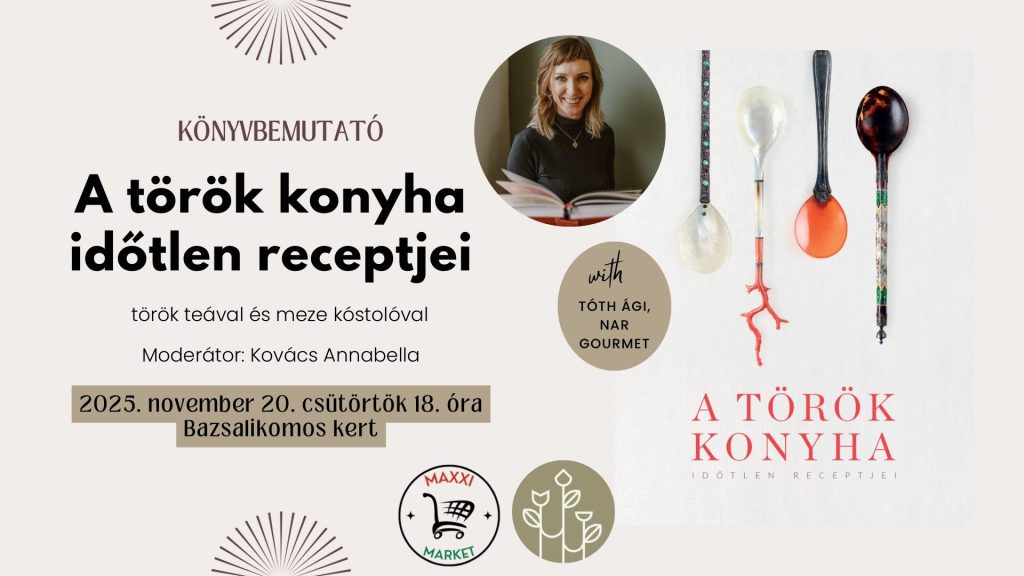 November 20-án különleges irodalmi és kulináris élménnyel készülünk a Bazsalikomos kertben: vendégünk lesz Tóth Ági, török gasztronómiai szakértő, a Nar Gourmet márka alapítója, a nemrégiben magyarul is megjelent „A török konyha időtlen receptjei” című könyv fordítója. Ágival Kovács Annabella újságíró fog beszélgetni a könyv születéséről, a fordítás érdekességeiről, valamint a török konyha hagyományairól, újításairól. De szeretnénk, ha ez egy interaktív esemény is lenne, így várjuk majd a ti kérdéseiteket és hozzászólásaitokat is!